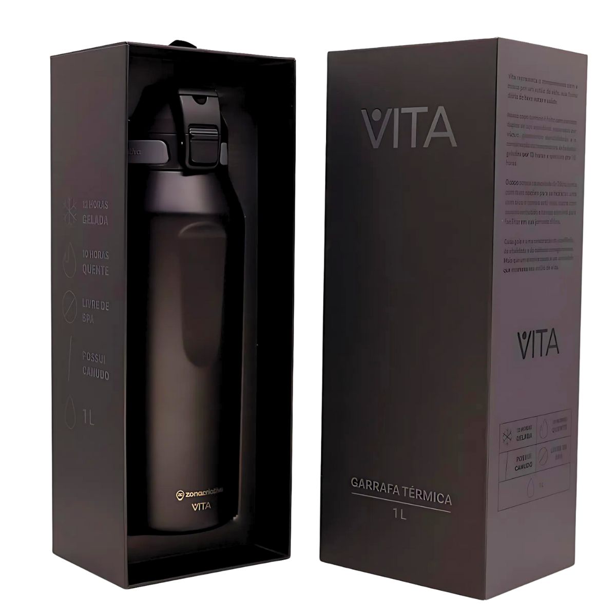 A Garrafa Térmica Vita Pegasus 1000ml Noir é a solução ideal para quem busca praticidade e quer manter suas bebidas na temperatura perfeita durante todo o dia.