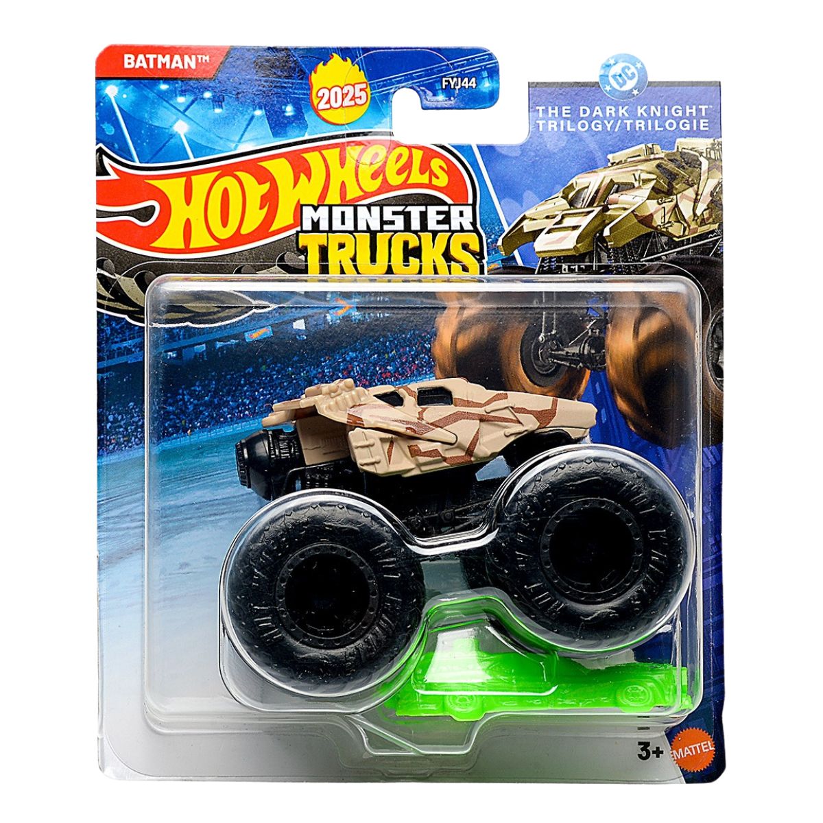 Prepare-se para aventuras épicas com o Hot Wheels Monster Truck Batman 2025 em escala 1:64, unindo a força dos Monster Trucks com o icônico universo The Dark Knight Trilogy.